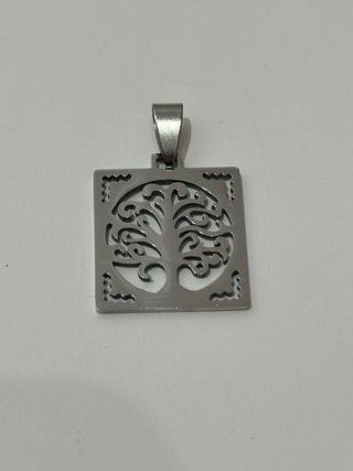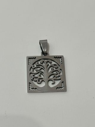 Colgante de acero con diseño de árbol de la vida. Aprox 4cm - Material: Acero. - Diseño intrincado de árbol de la vida. - Marco cuadrado con detalles decorativos.