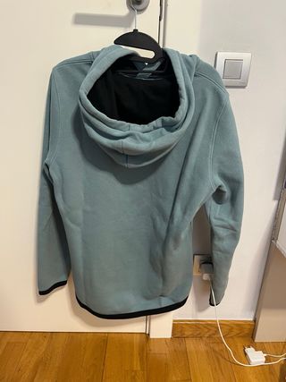 Sudadera con capucha de color verde azulado. - Logo de la marca en el pecho. - Bolsillo canguro. - Cordones negros en la capucha. - Ribete negro en puños y bajo.