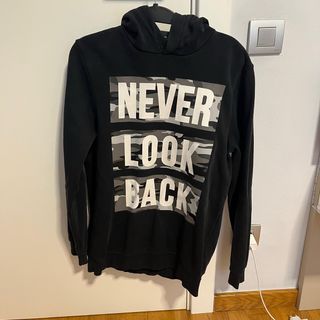 Sudadera con capucha y un diseño llamativo. - Estampado de camuflaje en gris y negro. - Inscripción NEVER LOOK BACK en blanco.
