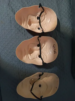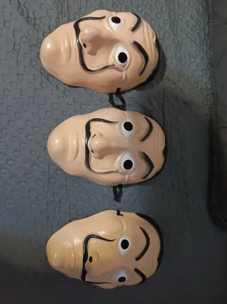 Conjunto de tres máscaras inspiradas en la serie La Casa de Papel. - Diseño icónico. - Color beige con detalles en negro.