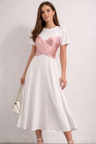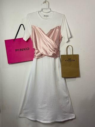 Vestido de Zara con un diseño elegante y moderno. - Parte superior blanca con detalle cruzado satinado en rosa. - Falda larga y fluida en color blanco. - Ideal para eventos de verano o ocasiones especiales. Precioso Vestido Zara largo Perfecto para cada dia Talla S 100% Algodon Nuevo sin etiqueta solo ha sido lavado Medidas * Hombros 38Cm Axila a axila 44Cm Largo total 120 Cm