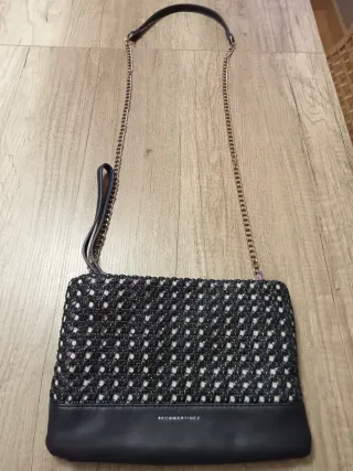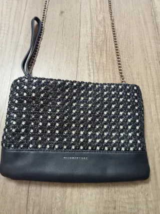 Bolso con cadena de Paco Martínez. - Diseño tejido en la parte superior. - Base de piel. - Cadena metálica para llevar al hombro o cruzado.