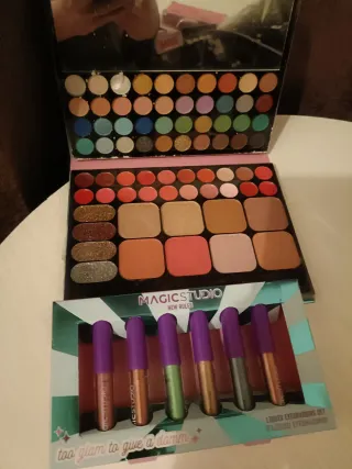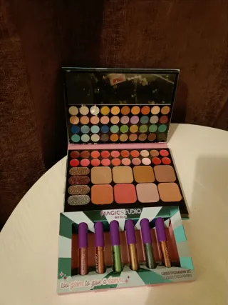 Set de maquillaje MAGIC STUDIO que incluye una paleta de sombras de ojos y 6 sombras de ojos líquidas. - Paleta con múltiples colores de sombras. - 6 sombras de ojos líquidas en tonos variados.