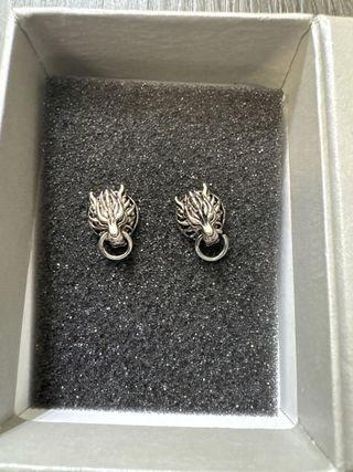 Pendientes inspirados en Cloud de Final Fantasy VII. - Diseño de cabeza de lobo. - Acabado plateado.