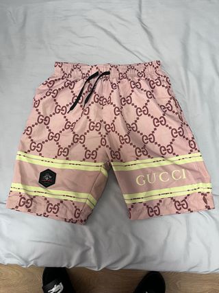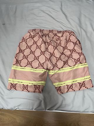 Pantalón corto de la marca Gucci con estampado GG. - Diseño con rayas amarillas. - Parche con logo en el lateral. - Cordón ajustable en la cintura.