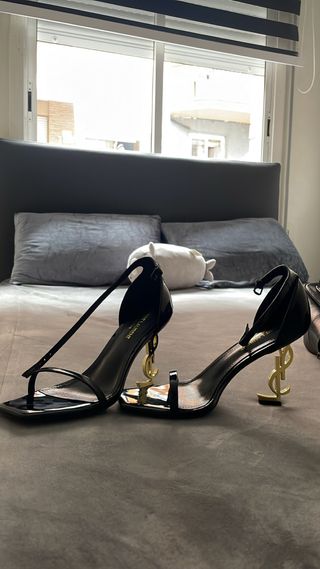 Elegantes tacones de la marca Saint Laurent. - Diseño en color negro con detalles dorados. - Tacón con el icónico logo de la marca.