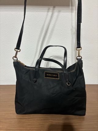 Bolso de mano y bandolera de la marca Bimba y Lola. Lo ha dado todo, de ahí el precio. - Material textil. - Cierre de cremallera. - Asa de mano y correa ajustable. - Placa metálica con logo. - 35x25