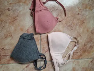 Conjunto de tres sujetadores deportivos, ideales para diversas actividades. - Sujetador de color rosa. - Sujetador de color rosa pálido. - Sujetador de color gris. SIN ESTRENAR