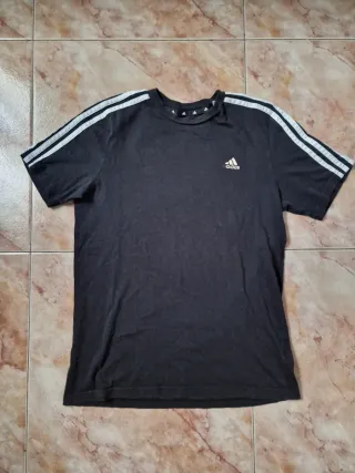 Camiseta deportiva de manga corta con el icónico diseño de tres rayas. - Diseño con tres rayas en las mangas. - Logo de Adidas en el pecho. La talla es una 13/14 pero soy S y me va bien