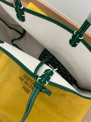 Bolso de mano con un diseño moderno y práctico. - Material exterior de lona resistente. - Forro interior con estampado de rayas rojas y blancas. - Asa cómoda para llevar al hombro. - Nuevo sin etiqueta. Ideal para regalo
