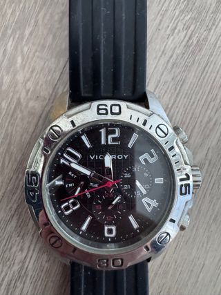 Reloj Viceroy con correa negra y detalles plateados. Con marca en el cristal - Esfera con números arábigos. - Bisel giratorio. - Correa de caucho.