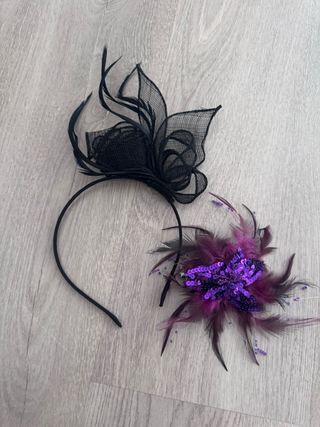 Elegantes tocados para eventos especiales. - Diseño con plumas y lentejuelas. - Montado sobre diadema negra.