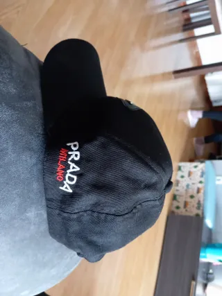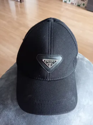 Gorra de la marca Prada en color negro. Un accesorio clásico y versátil. - Diseño triangular con logo de la marca. - Material textil.