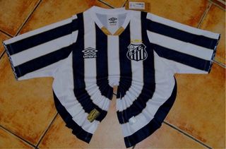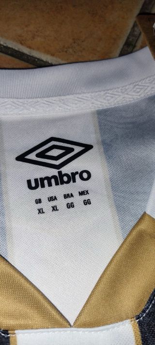 Camiseta de fútbol del Santos FC, marca Umbro. Diseño a rayas verticales. - Escudo del club bordado. - Logo de Umbro. - Talla XL