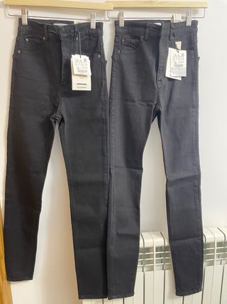 Conjunto de dos pantalones vaqueros negros. Sin estrenar - Diseño de cintura alta super high waist. - Cierre de cremallera y botón.