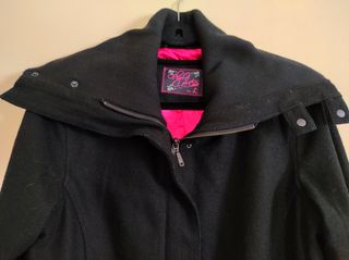 Abrigo en color negro. Talla L. Forro en color rosa.