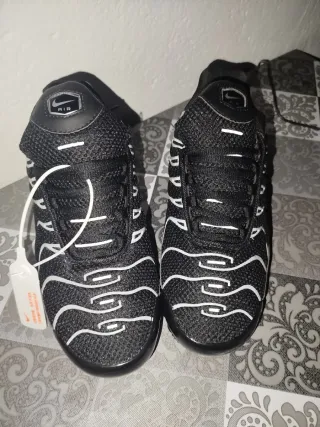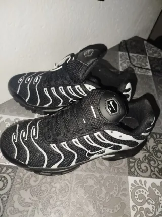 Zapatillas deportivas Nike TN para hombre. - Diseño en color negro con detalles plateados. - Talla 42.