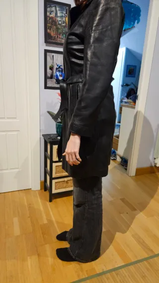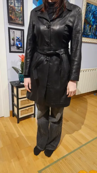 Elegante abrigo de piel con cinturón. - Diseño clásico. - Cierre de botones. - Cinturón a juego Piel ovina muy syave y de excelente calidad sin uso