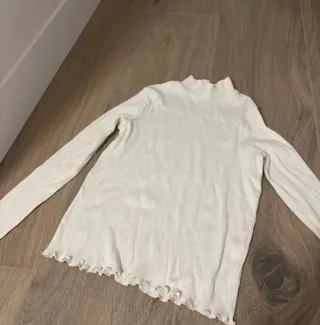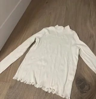 Camiseta de manga larga con cuello vuelto y detalle de volantes en el bajo. - Tejido acanalado. - Cuello alto. - Bajo con acabado festoneado.