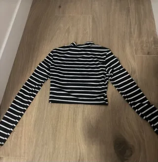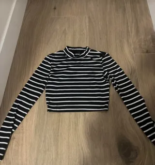 Camiseta de rayas con cuello alto y manga larga. - Diseño de rayas horizontales. - Corte crop top.
