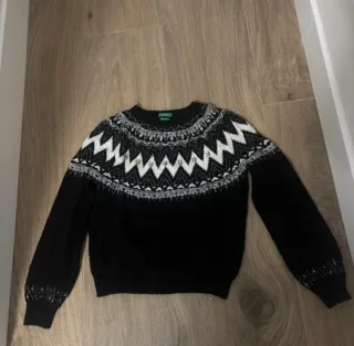 Jersey de punto con un diseño Fair Isle en la parte superior. - Cuello redondo. - Manga larga. - Puños y bajo con detalle de punto. - Estampado geométrico en blanco y negro.