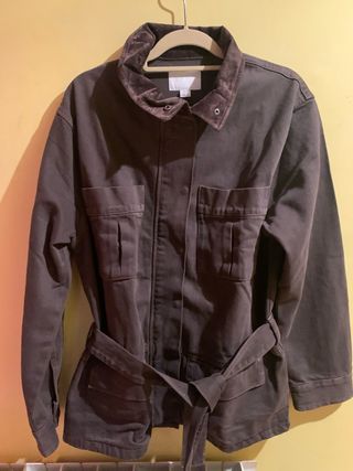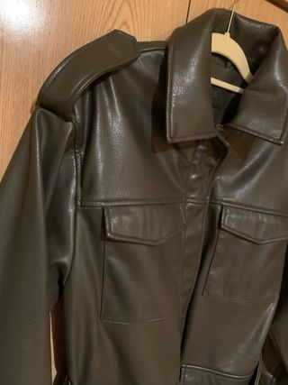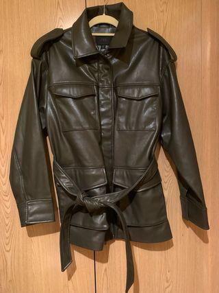 Cazadora estilo militar con efecto piel. - Cierre de botones. - Bolsillos delanteros. - Cinturón para anudar.