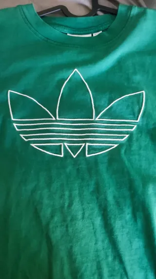 Camiseta de manga corta Adidas en color verde. Logo blanco en el pecho y las tres rayas blancas en las mangas.