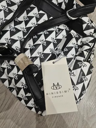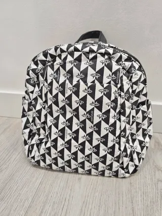Mochila con un llamativo estampado. - Diseño con logo repetido. - Combinación de blanco y negro. Con muchos departamento No pesa nada