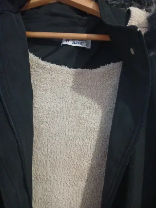 Abrigo largo con forro interior de borreguito y capucha. - Cierre de cremallera. - Cintura ajustable con cordón. - Puños elásticos. - Detalle de pelo en la capucha.