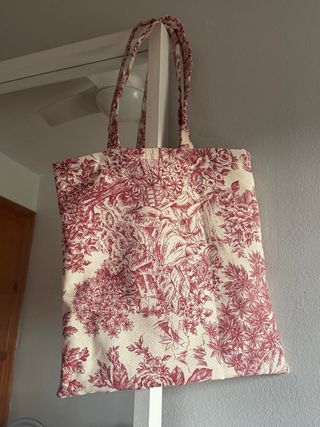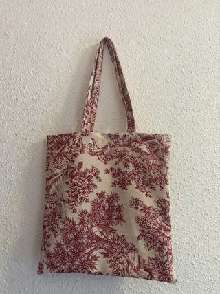 Bolso tote con un bonito estampado floral en tonos rojos y beige. Es un accesorio práctico y con estilo. - Diseño clásico. - Asas cómodas para llevar al hombro.