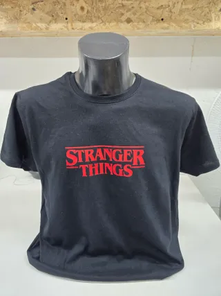 Camiseta negra con el logo de Stranger Things. - Diseño frontal con el título de la serie. - Diseño trasero - Manga corta. - 100% algodón Disponible de la M a la XXL