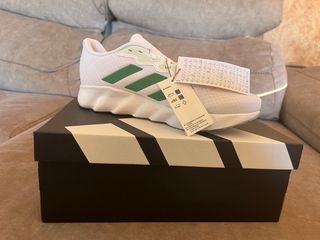 Zapatillas deportivas Adidas Switch Move Running en talla 44. Ideales para correr y entrenar. - Diseño moderno con detalles en verde. - Parte superior de malla transpirable. - Suela con buen agarre.