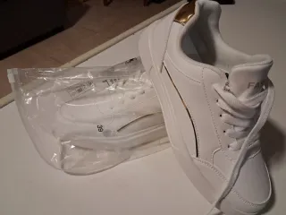 Zapatillas deportivas blancas y doradas