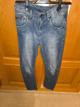 Pantalón vaquero de corte moderno. - Diseño desgastado. - Bolsillo con cremallera. - Cierre de botón y cremallera.