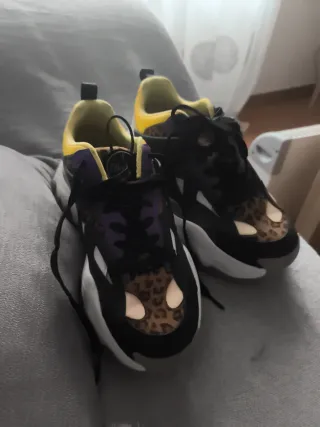 Zapatillas Buffalo originales de edición limitada. - Diseño multicolor con detalles en morado. - Estampado animal print. - Suela gruesa y cómoda.
