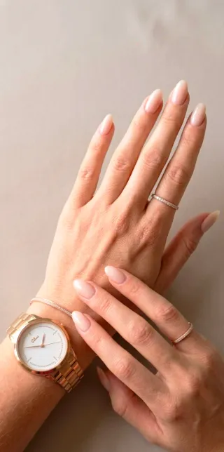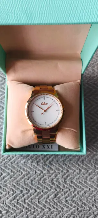 Elegante reloj con acabado en oro rosa. Fue un regalo que nunca estrené. De joyería. - Diseño con pulsera de eslabones. - Esfera blanca con detalles.