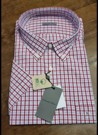 Camisa de cuadros de manga corta de la marca Emidio Tucci. - Diseño a cuadros en tonos rojos y blancos. - Cuello con botones. - Etiqueta BCI Better Cotton.