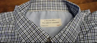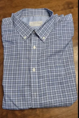 Camisa de vestir de cuadros de Emidio Tucci. - Diseño clásico. - Cuello abotonado. - Talla 7.