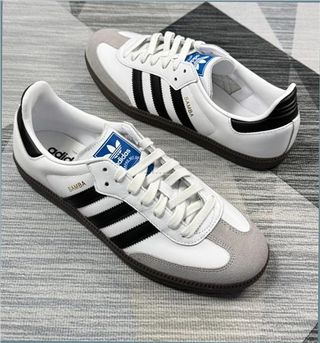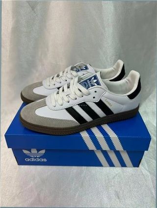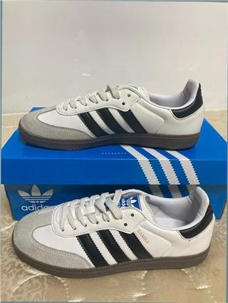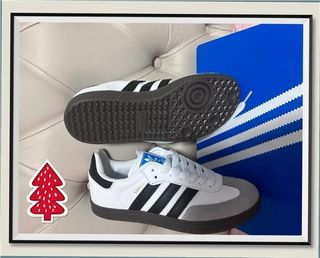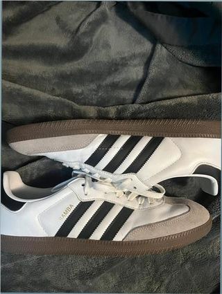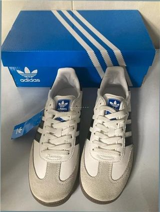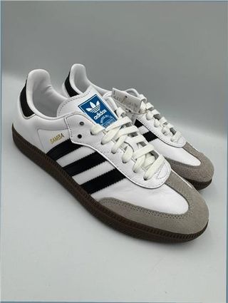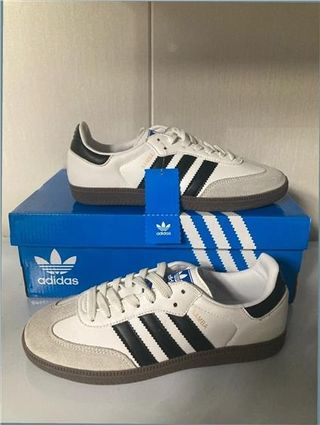 Zapatillas Adidas Samba Vegan en talla 36. - Diseño clásico con detalles en negro y blanco. - Materiales veganos.