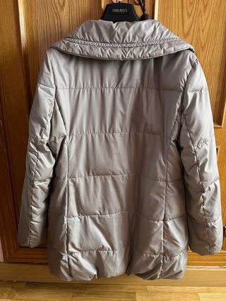 Elegante parka de la marca Armani en color gris perla. Un básico para tu armario. - Diseño acolchado. - Cuello alto. - Cierre de cremallera. - Relleno de plumón.