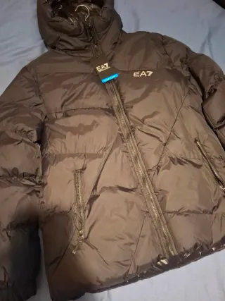 Abrigo acolchado de Emporio Armani. - Diseño brillante. - Cierre de cremallera frontal. - Logo de EA7 y Emporio Armani en la parte delantera. - No lo he usado porque me equivoqué de talla y me queda grande - se puede rebajar precio