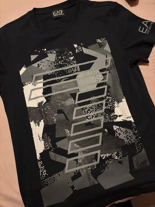 Camiseta de manga corta con el logo de EA7 Emporio Armani. En muy buen estado, se usó varias veces. Talla S ajustada al cuerpo