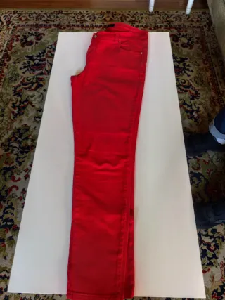 Pantalones jeans de la marca Carolina Herrera en un vibrante color rojo. Tienen algo de elastano. Ajustados (Slim) . Sus medidas dan para una 42/44. Medidas: Cintura 44 Largo 101 entrepierna 74 Bajo ancho 15. Un básico elegante para cualquier armario. Cuidados. Muy buen estado. *Se puede comprar en persona en zona Santurce, Vizcaya. - Corte Slim recto. - Tejido de calidad. Un básico elegante para cualquier armario. Cuidados. Muy buen estado. *Se puede comprar en persona en zona Santurce, Vizcaya. - Corte Slim rect