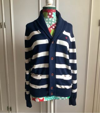 Rebeca de punto con diseño de rayas. Es una prenda cómoda y versátil. - Cuello tipo chal. - Cierre de botones. - Bolsillos delanteros.