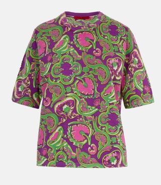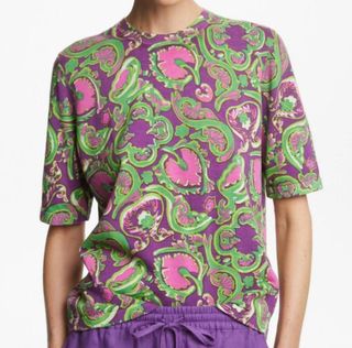 Top de punto con un llamativo estampado paisley. - Diseño con motivos florales y volutas. - Manga corta. - Cuello redondo.