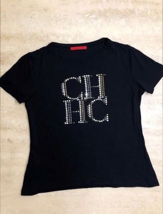Preciosa camiseta de la marca Carolina Herrera con un diseño llamativo. SIN ESTRENAR - Logo CH con pedrería. - Nombre CAROLINA HERRERA con pedrería. Precio original 55€