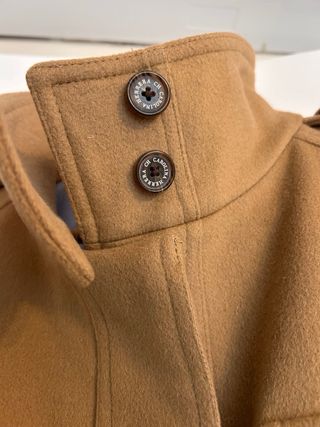 Elegante abrigo de Carolina Herrera en color camel. Un clásico atemporal. - Diseño militar. - Bolsillos frontales con solapa. - Hombreras. - Cuello alto.