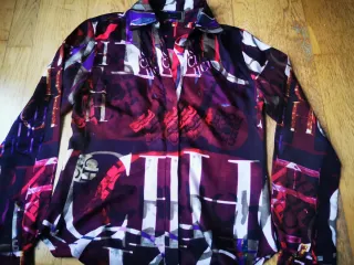 Elegante blusa de Carolina Herrera con un vibrante estampado. 100%seda - Diseño con letras y formas abstractas. - Mangas largas. - Cuello camisero.
