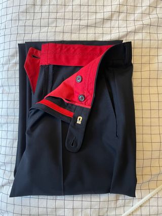 Pantalón de vestir Carolina Herrera con un diseño elegante. - Detalle de forro interior en color rojo. - Cierre con botones y presilla metálica. Talla 38