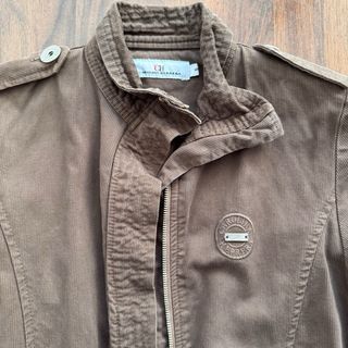 Chaqueta de Carolina Herrera en color marrón. Presenta un diseño elegante y moderno. - Cuello alto con cierre de botón. - Cinturón ajustable a la cintura. - Cierre frontal de cremallera. - Bolsillos laterales. - Detalle de hombreras.